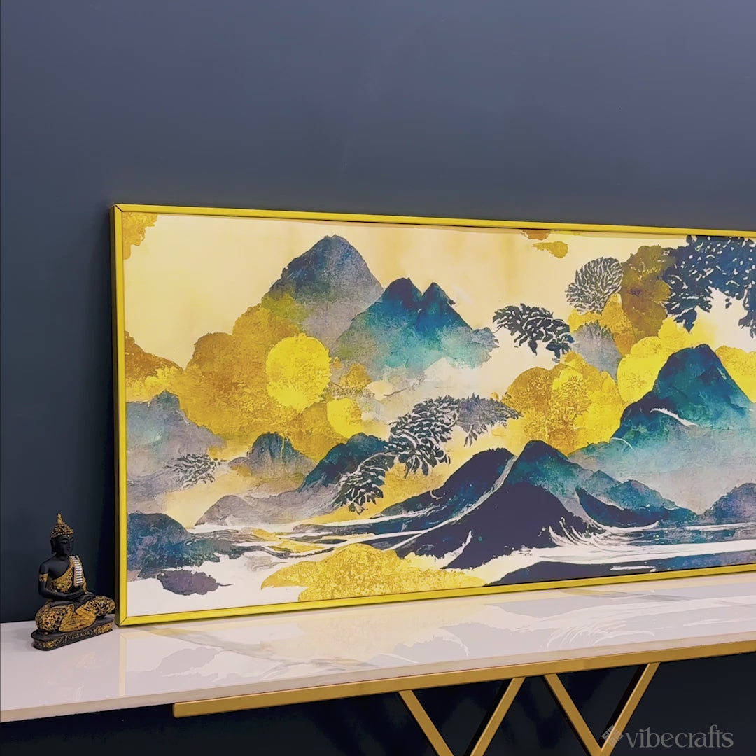Golden Mountain Scenery of Mount Fuji Premium Canvas Wall Painting