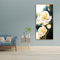 Golden Particles with White Flower Premium Canvas Wall Painting