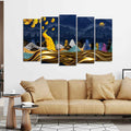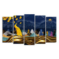 Golden Peacock in Dark Forest Premium Wall Painting Set of 5 Pieces