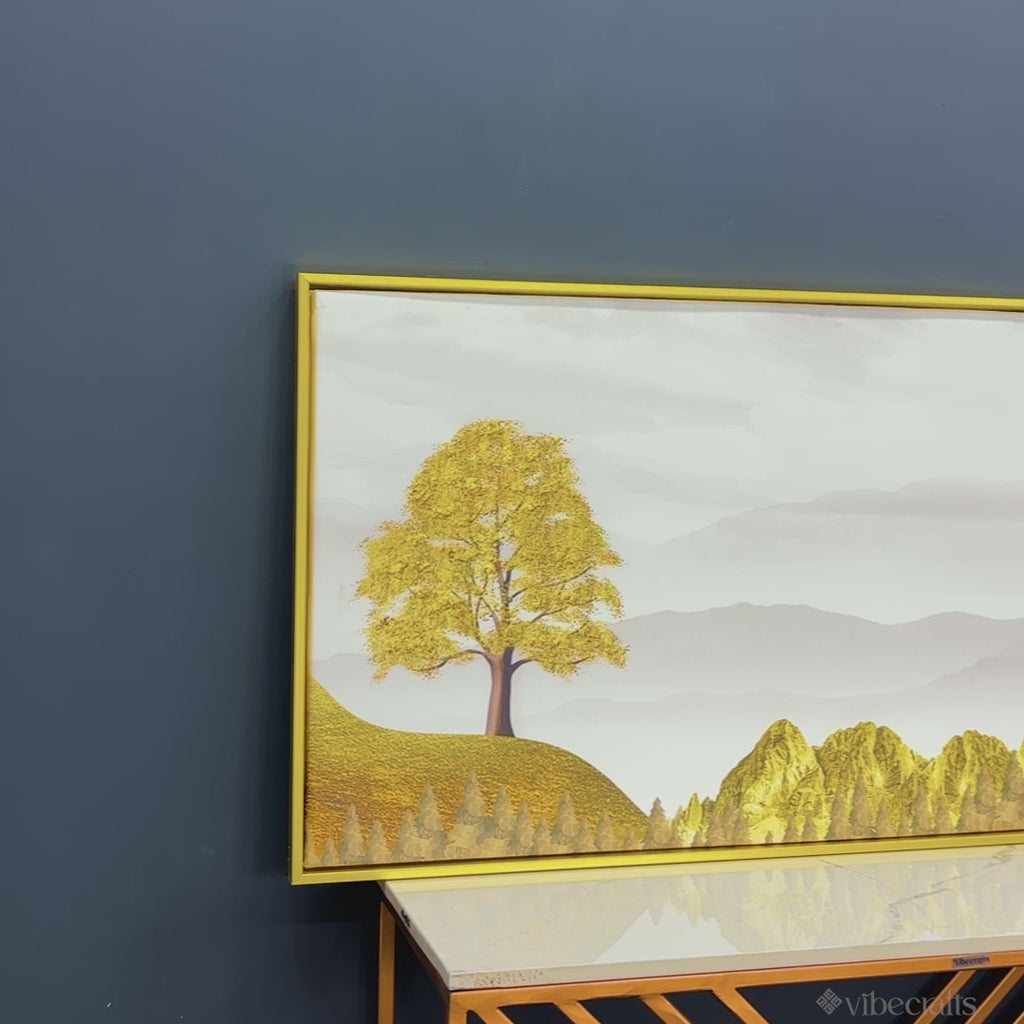 Golden Trees with Beautiful Sunrise Premium Canvas Wall Painting
