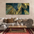 Golden Tropical Palm Leaves Canvas Wall Painting 3 Pieces