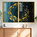 Group of Golden Fishes Acrylic Floating Wall Painting Set of 2