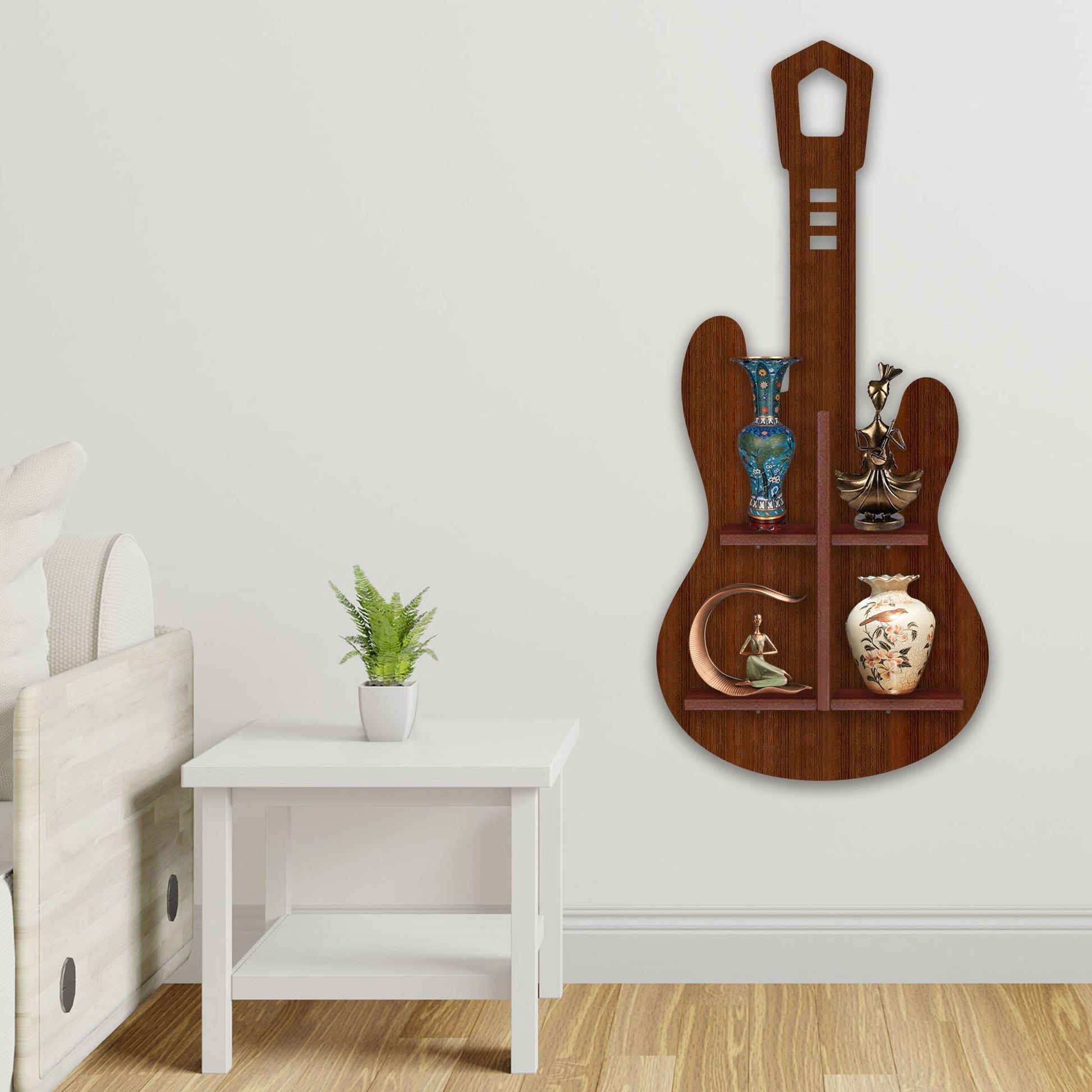 Guitar Shape Wooden Wall Shelf LED Light Wall Shelf with Walnut Finish