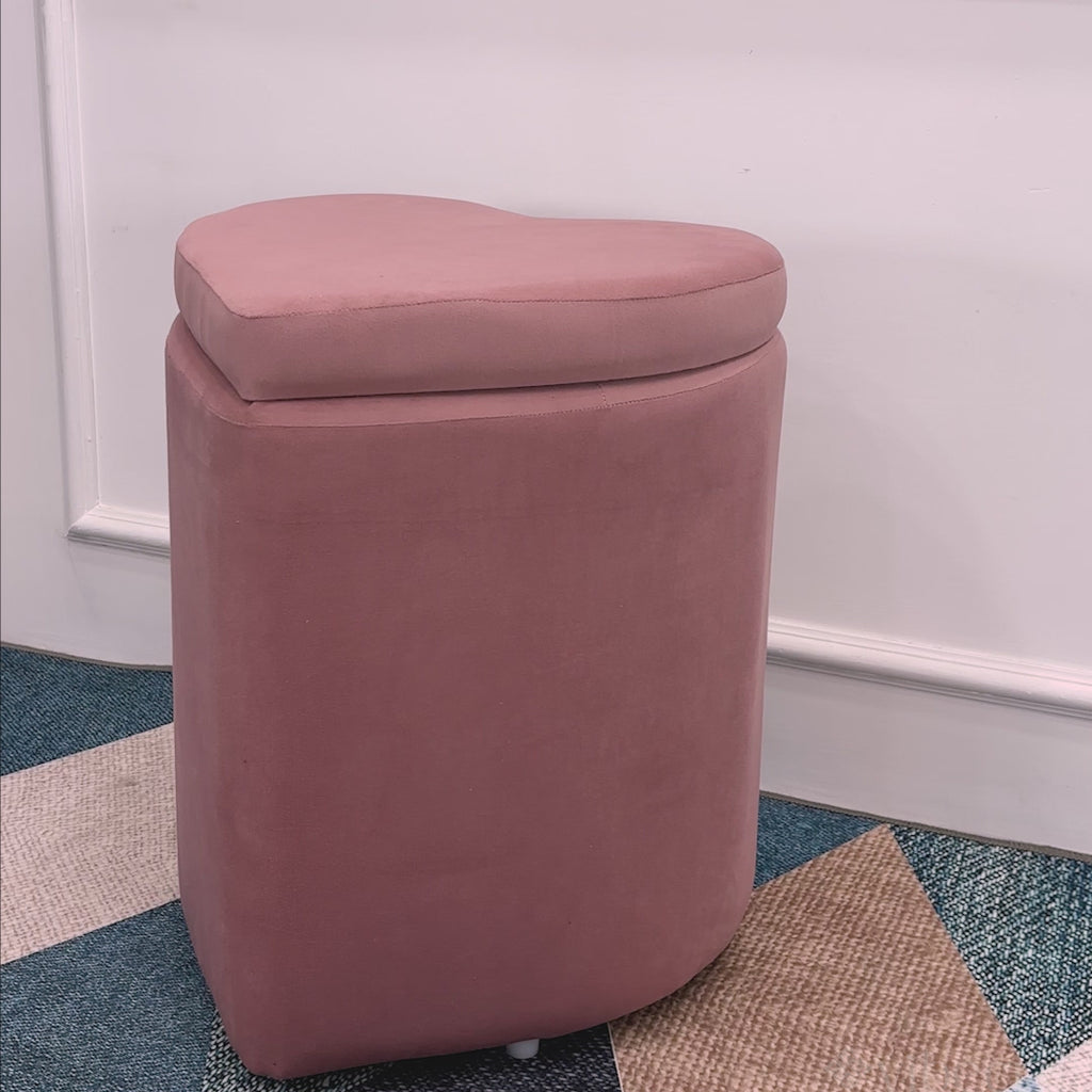 Heart Shaped Storage Velvet Fabric Padded Makeup Stool