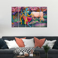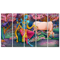 Canvas Wall Painting of Krishna Playing Flute Set of 5 Pieces