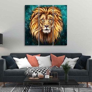 Lion Face Premium Wall Painting Set of 3 Pieces