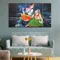 Lord Radha Krishna in Dark Forest Five Pieces Canvas Wall Painting