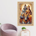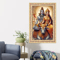 Lord Shiv with Parvati Floral Border Vertical Canvas Wall Painting