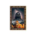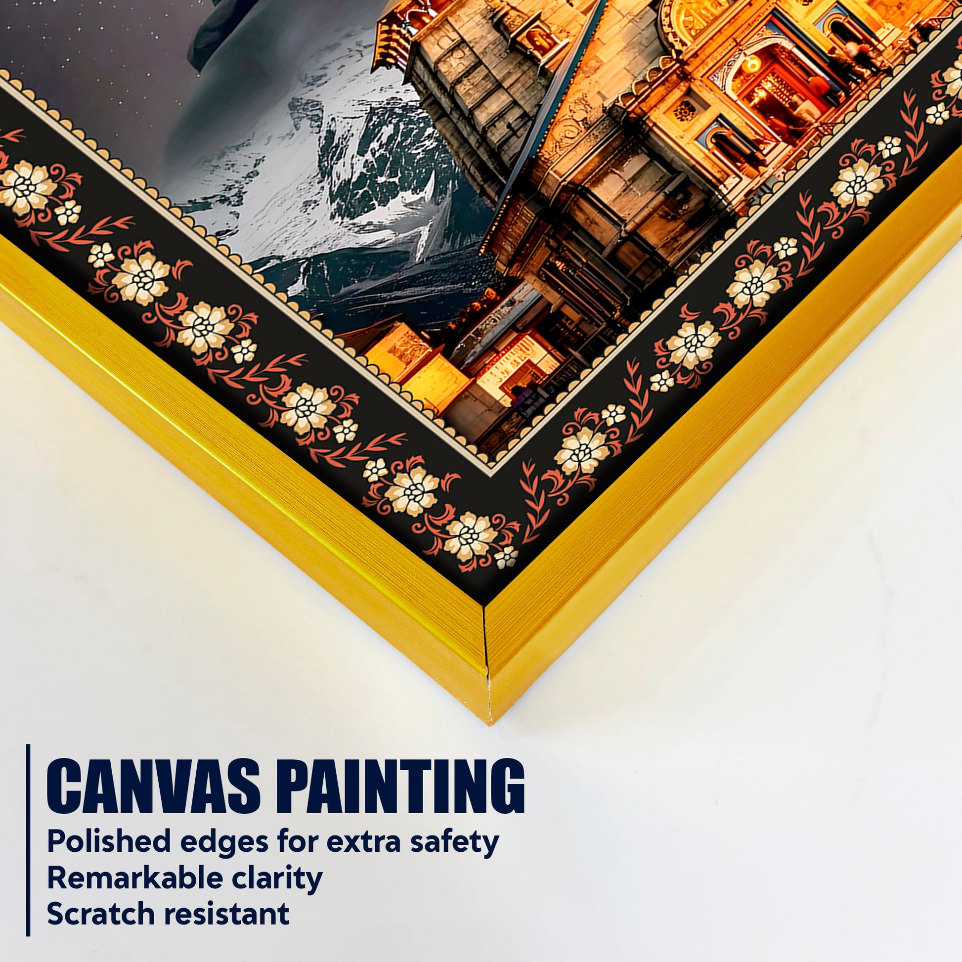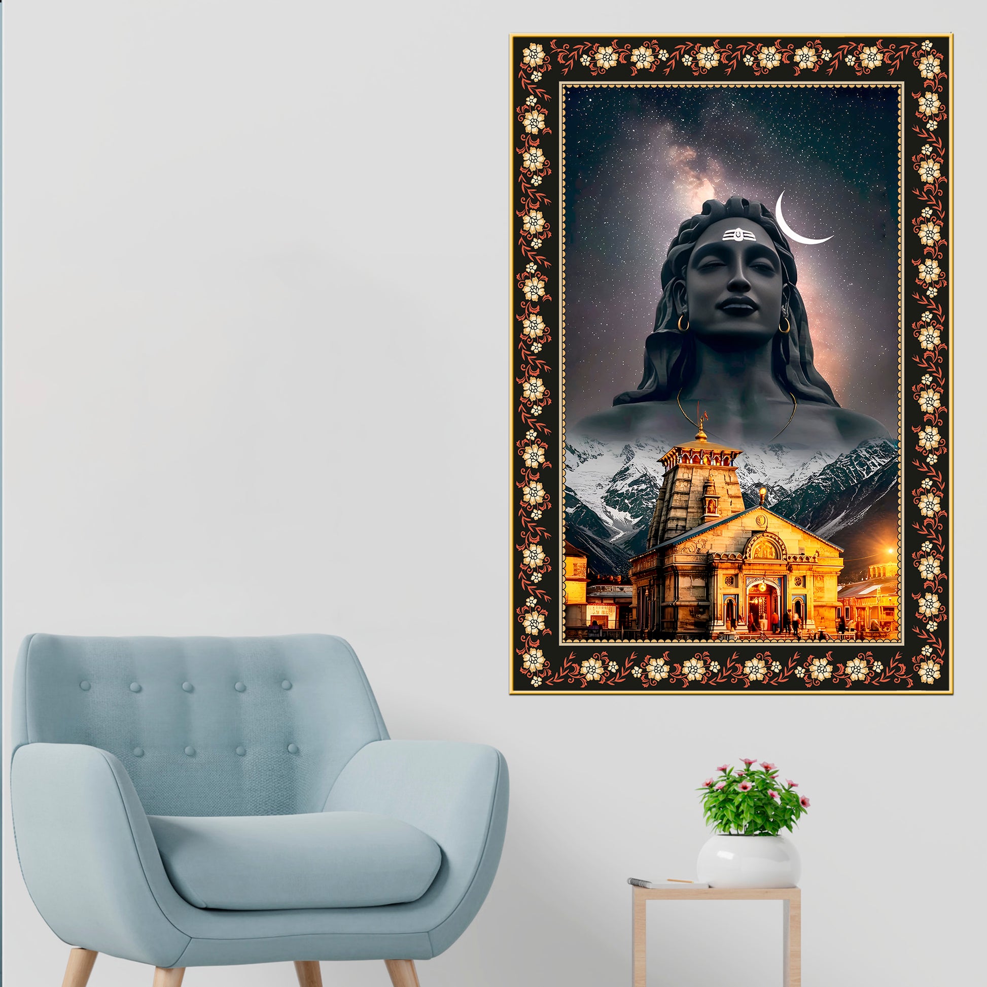 Lord Shiva in Kedarnath Temple Floral Border Vertical Wall Painting