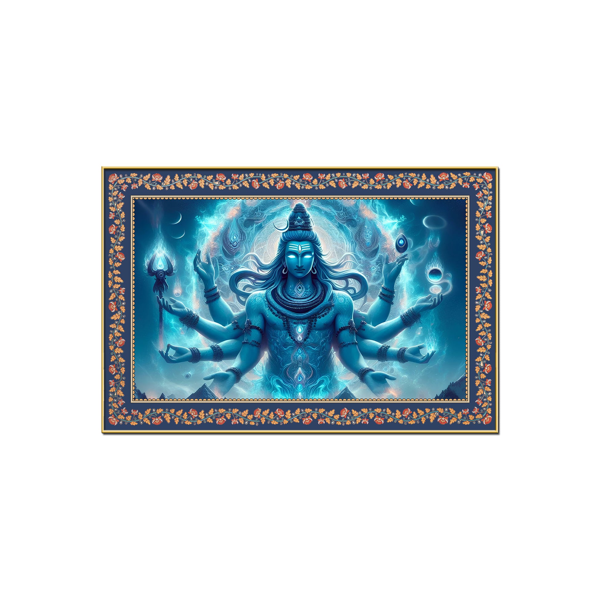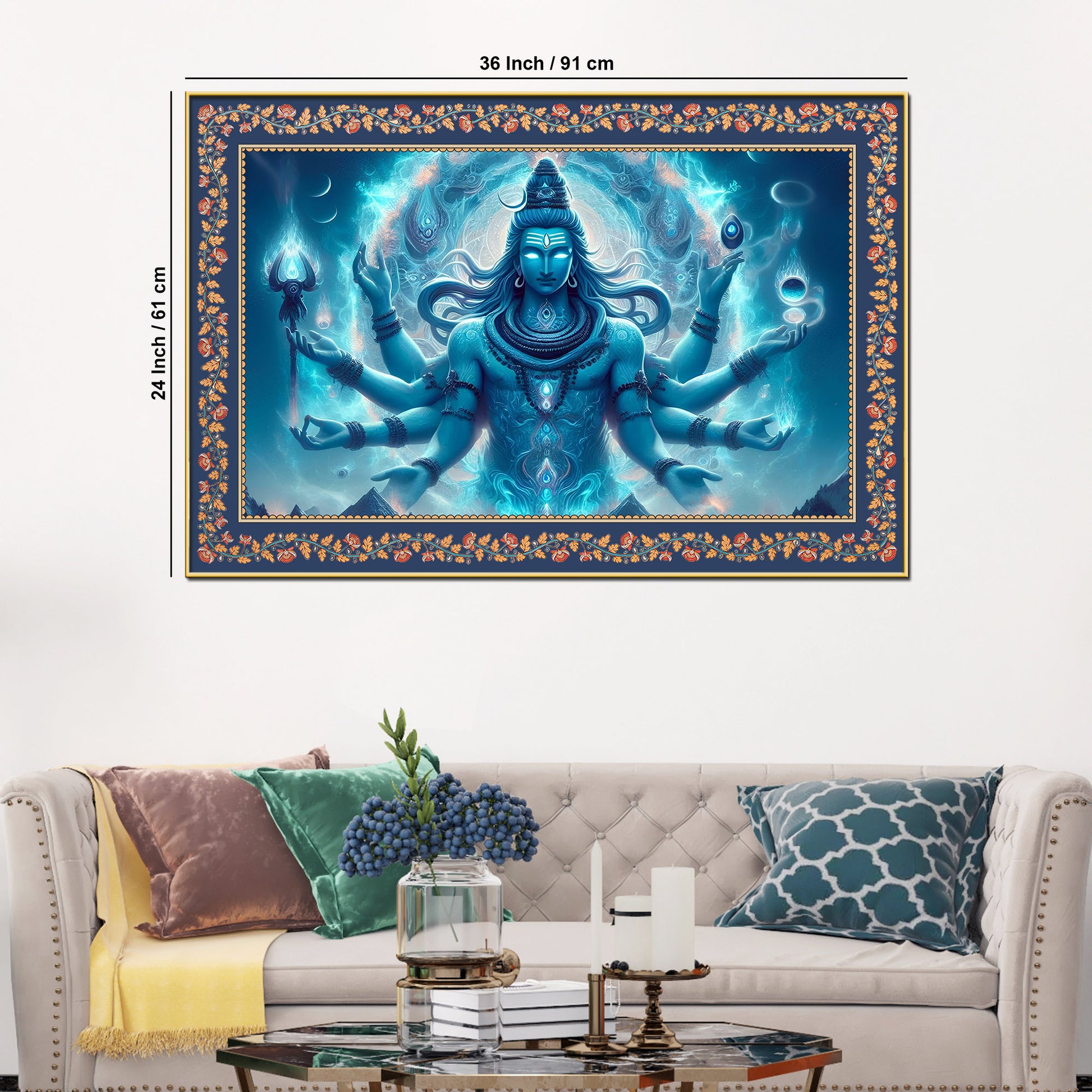 Lord Shiva Rudra Avatar Floral Border Canvas Wall Painting