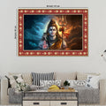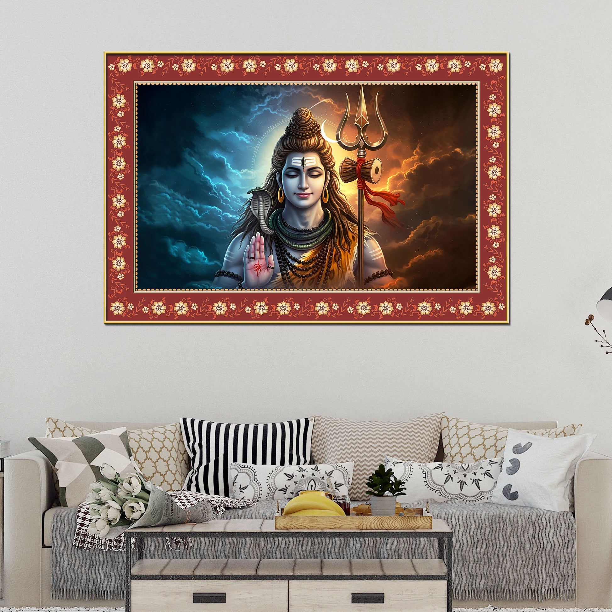 Lord Shiva with Holding Trishula Border Canvas Wall Painting