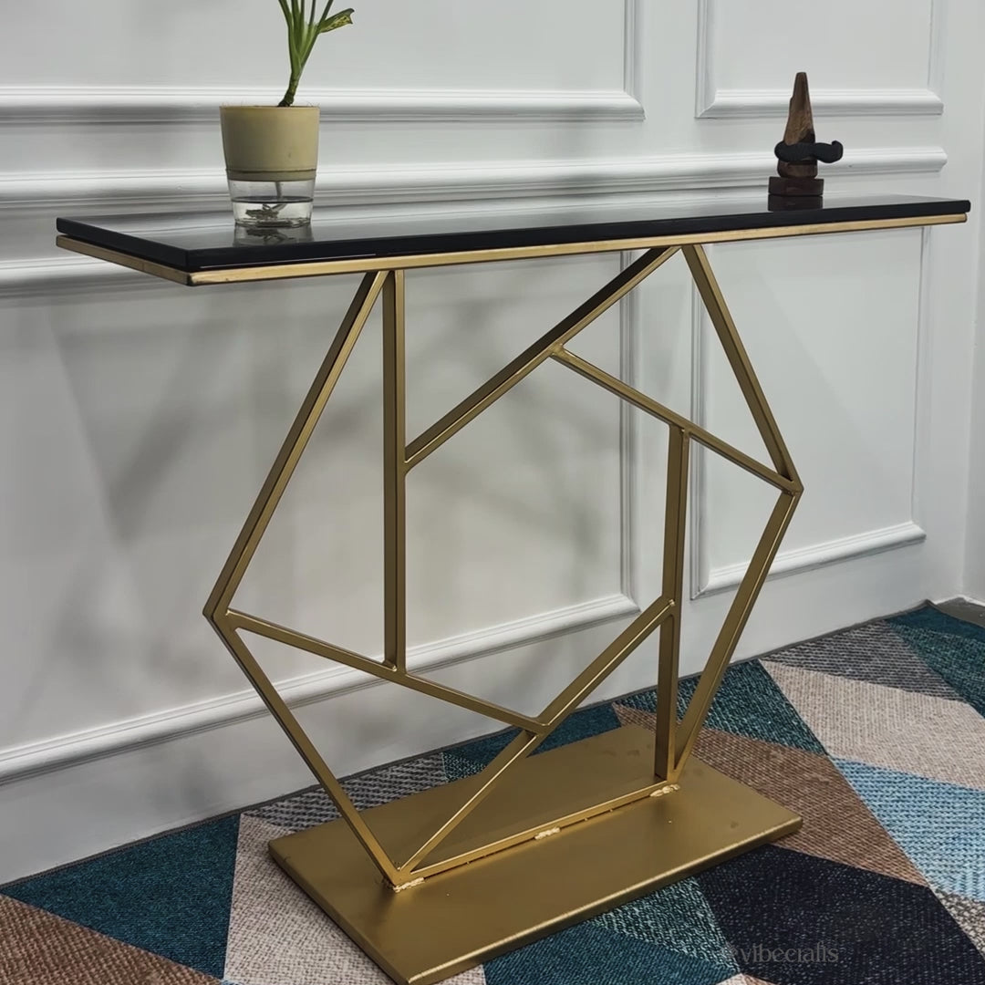 Luxurious Contemporary Console Table In Hexagonal Design with Black Marble