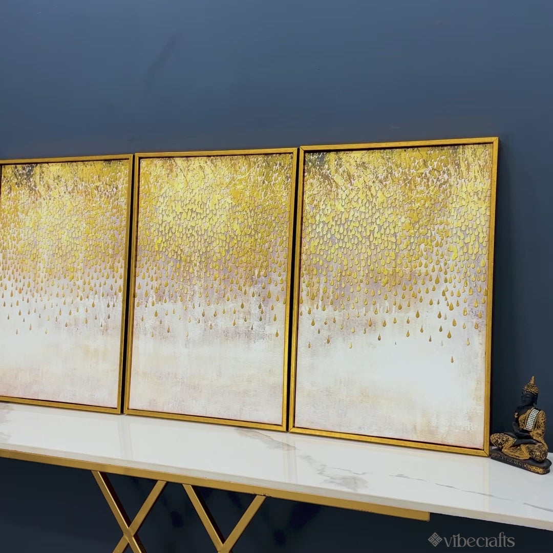 Luxurious Golden Pattern Premium Floating Canvas Wall Painting Set of Three