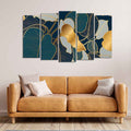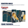 Luxury Golden Art Monstera Leaves Five Pieces Canvas wall Painting
