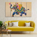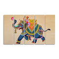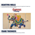 Madhubani Art Elephant Premium Canvas Wall Painting Set of Five