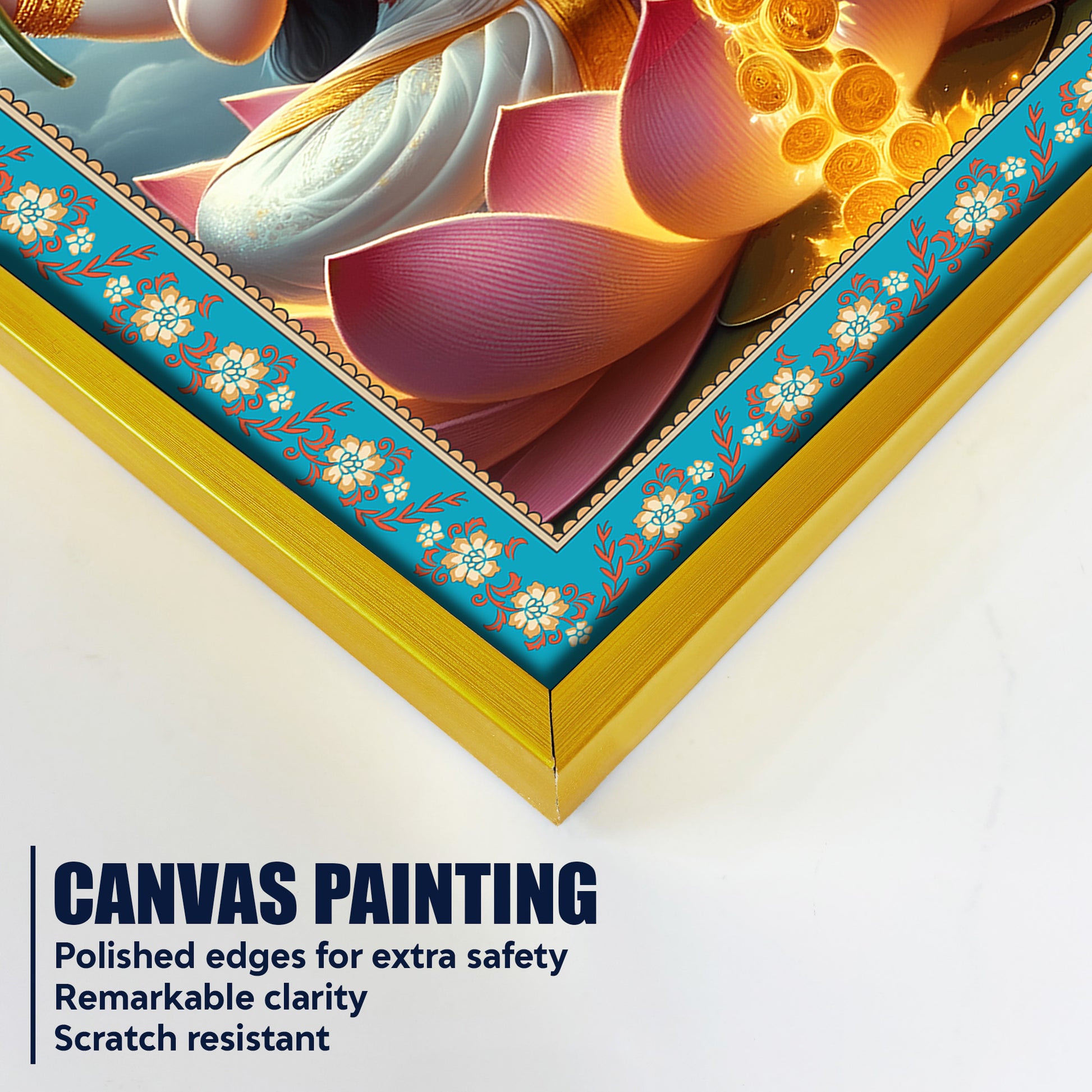 Mata Laxmi Prosperity Floral Border Vertical Canvas Wall Painting