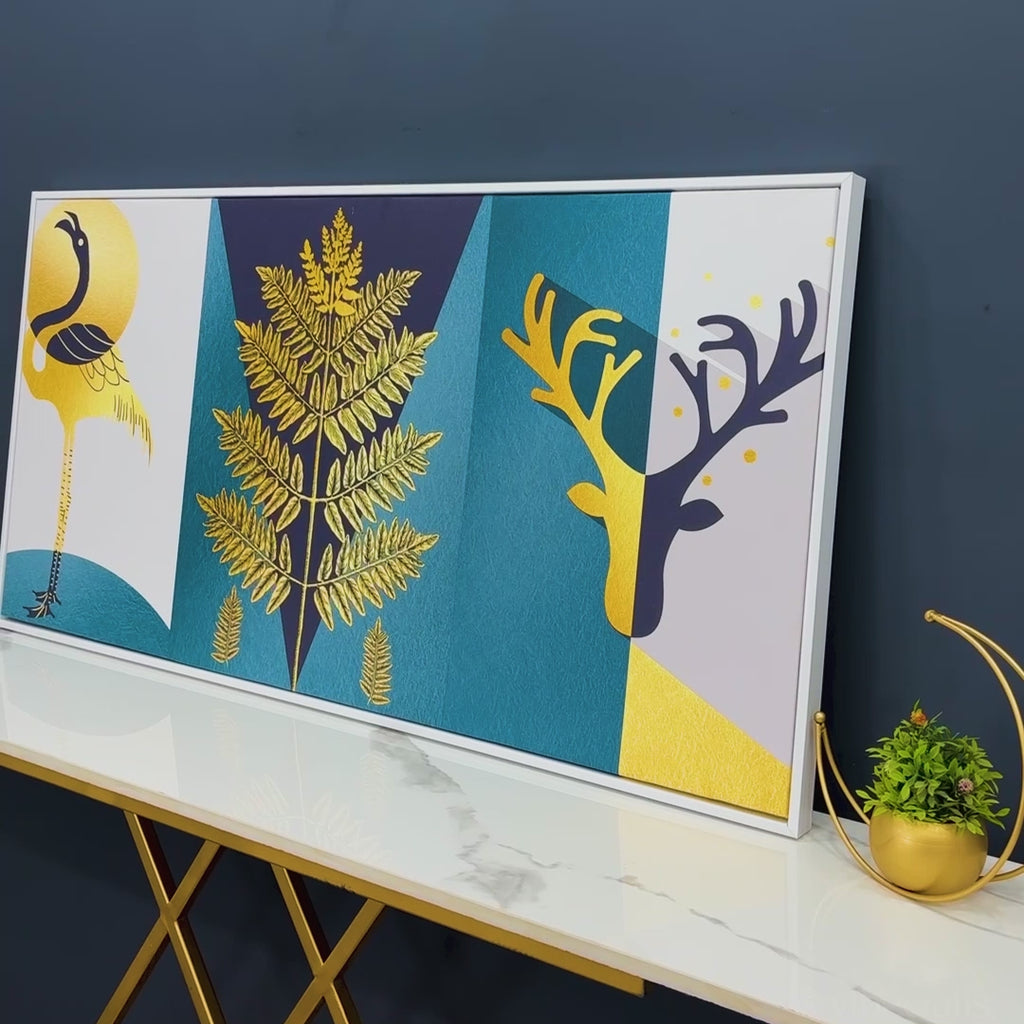 Modern Abstract Golden Leaf Flamingo Deer Antlers Canvas Wall Painting