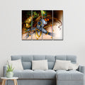 Playing Flute Krishna Canvas Wall Painting 4 Pieces Set