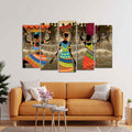 Premium Canvas Wall Painting of African Warli Art Set of Five Pieces