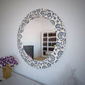 Premium Round Enchanting Blue Flowers Printed Frame Acrylic Wall Mirror