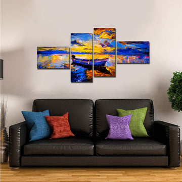 Premium Wall Painting of Sky Sunset and Boat on the Water