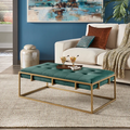 Rectangular Shaped Velvet Ottoman with Golden Metal Finish