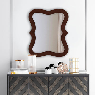 Rectangular Wavy Shaped Wooden Wall Mirror
