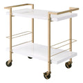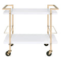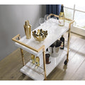 Rolling White Bar Trolley with Sophisticated Golden Metal Finish