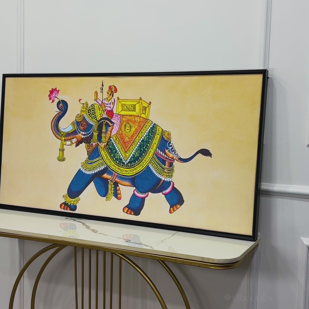 Madhubani Art Elephant Premium Canvas Wall Painting