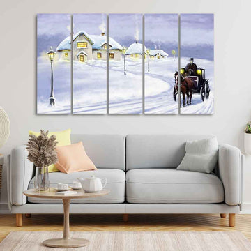 Rural Landscape in Winters Wall Painting of Five Pieces