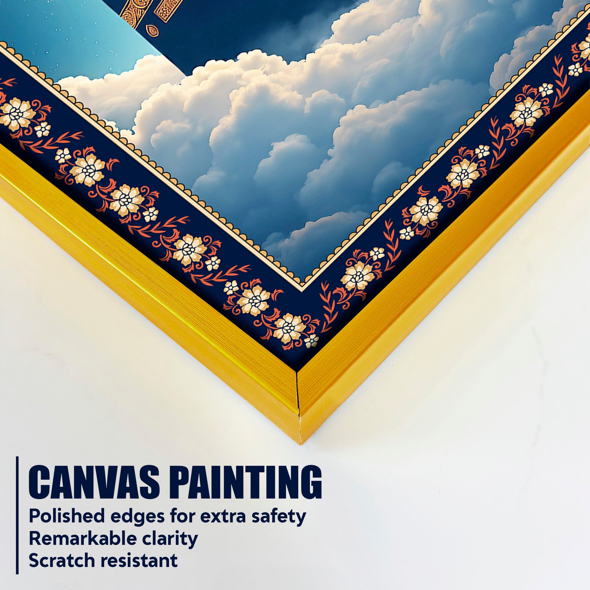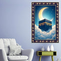Serene Kaaba Black Cube Floral Border Vertical Wall Painting