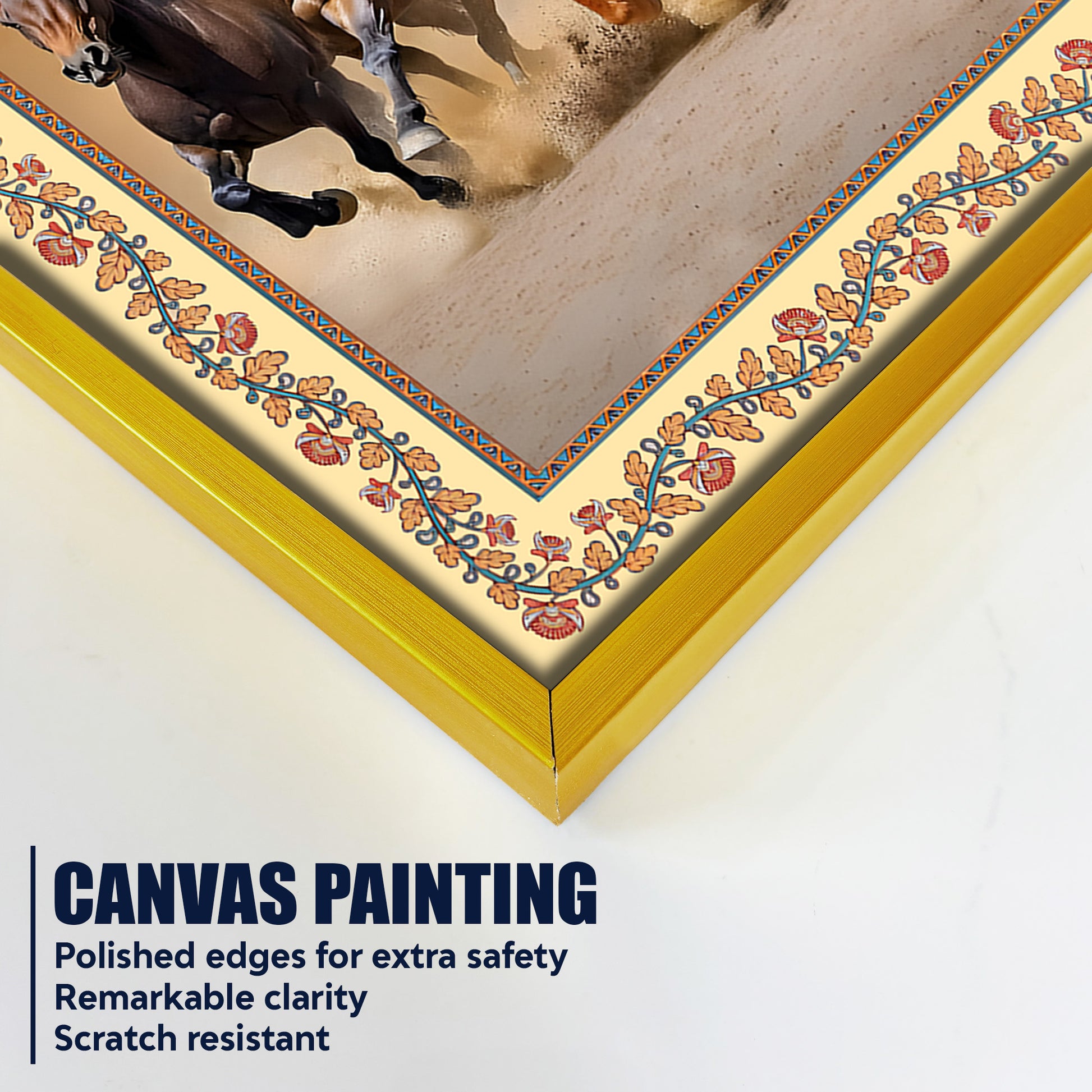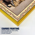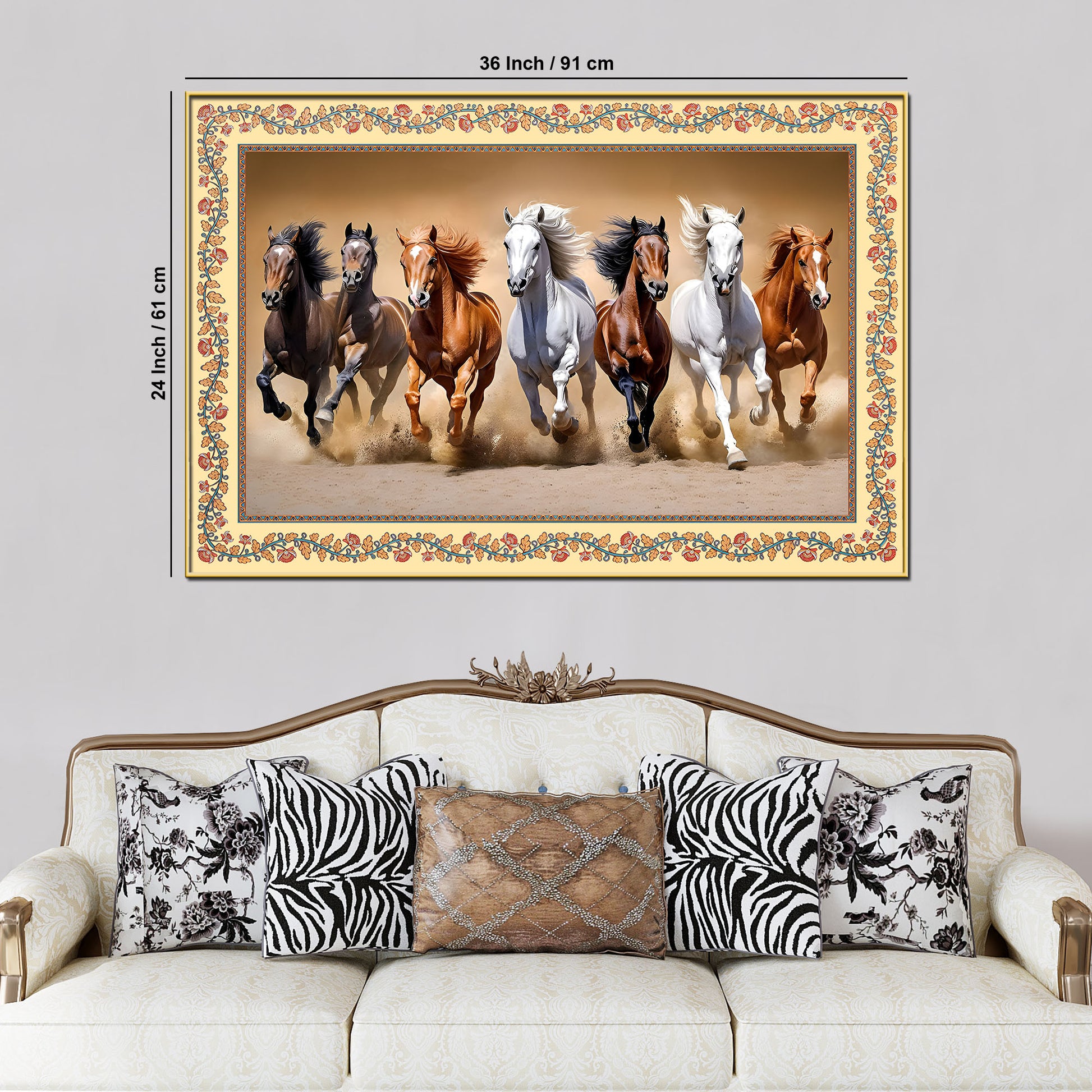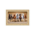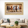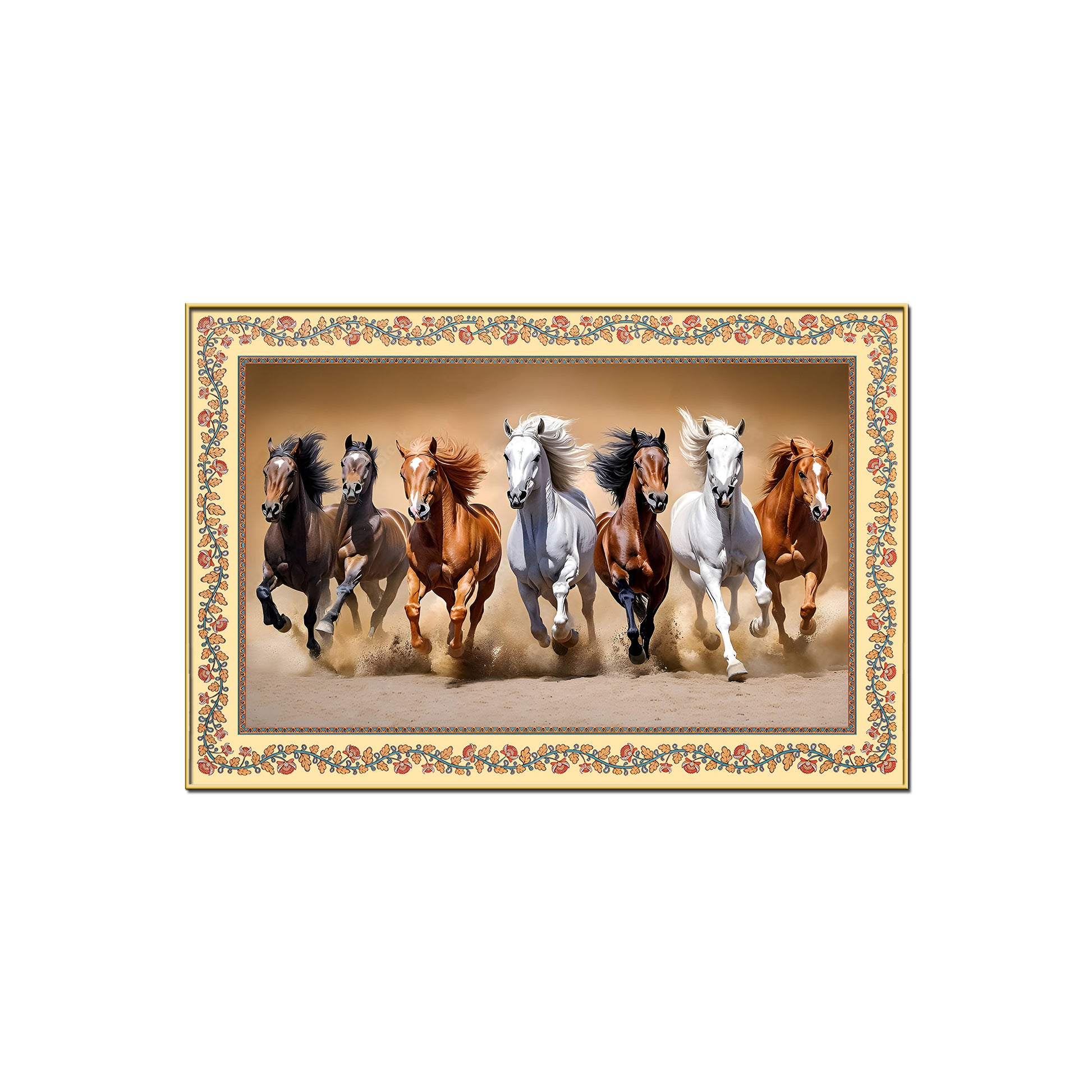 Seven Horses Running in Desert Floral Border Canvas Wall Painting