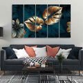 Shiny Golden Leaves Floating Canvas Wall Painting Set of Five