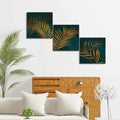 Shiny Golden Tropical leaves 3 Pieces Canvas Wall Painting