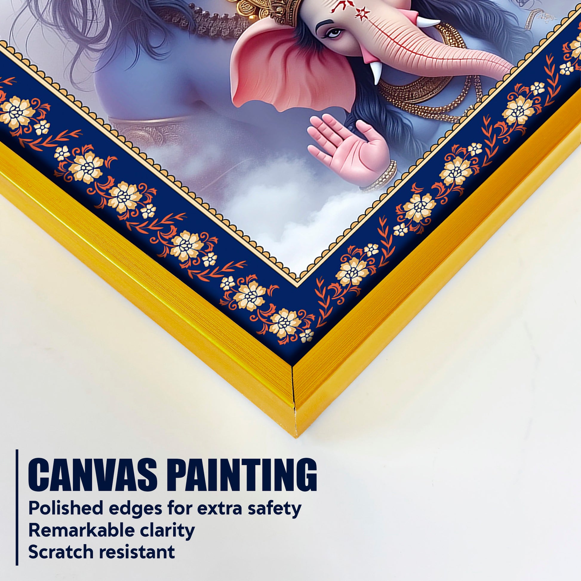 Shiva Grace Ganesha Wisdom Floral Border Vertical Wall Painting