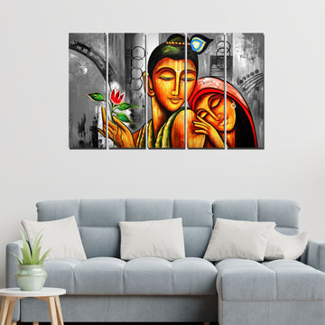 Shree Radha Krishna Canvas Wall Painting Set of 5