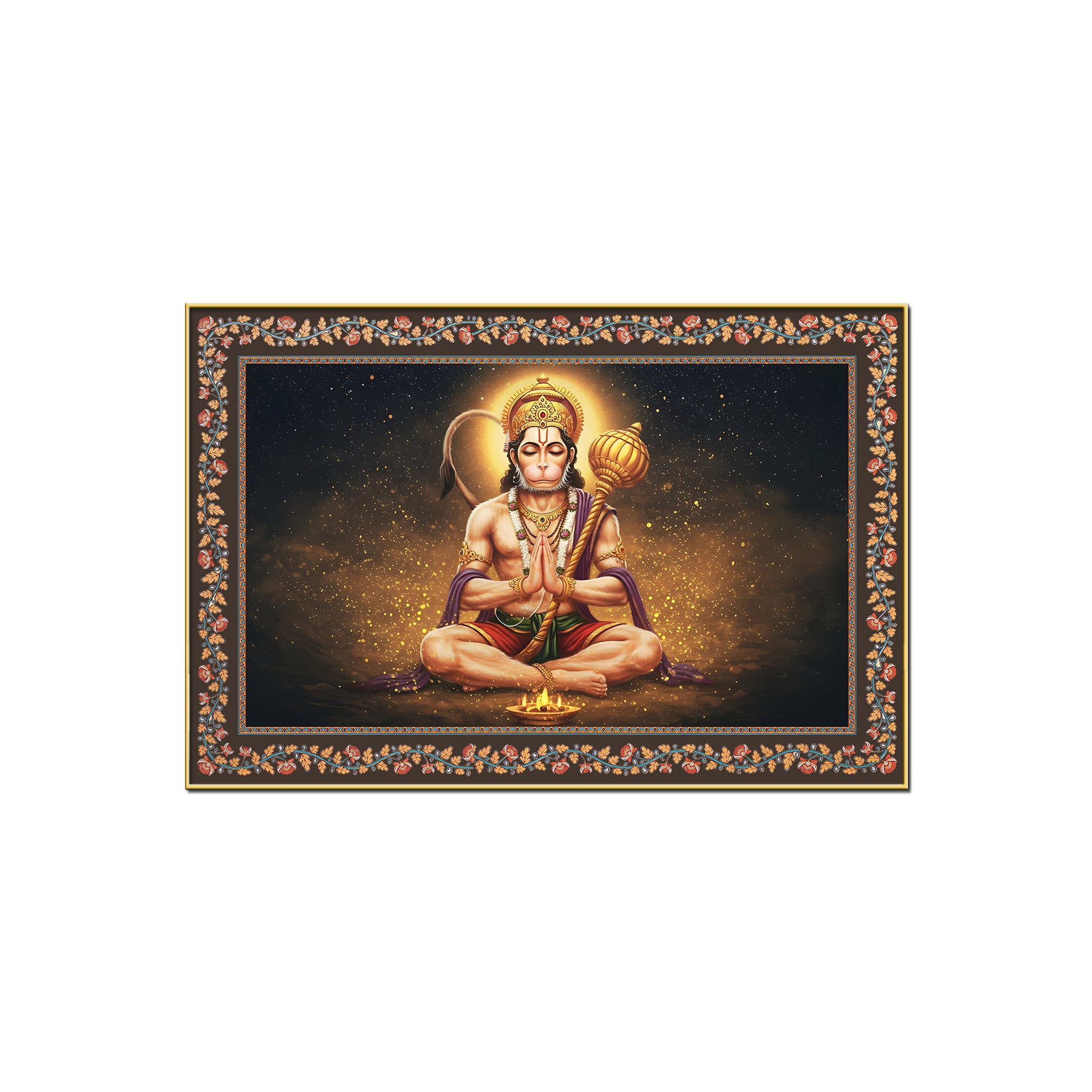 Shri Bajrangi Hanuman Floral Border Canvas Wall Painting