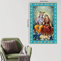Shri Krishna with Radha Rani Floral Border Vertical Canvas Wall Painting