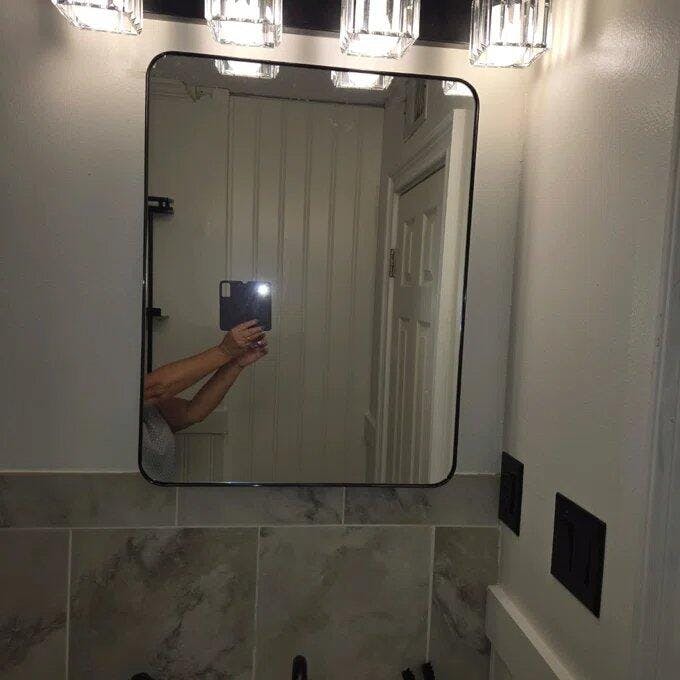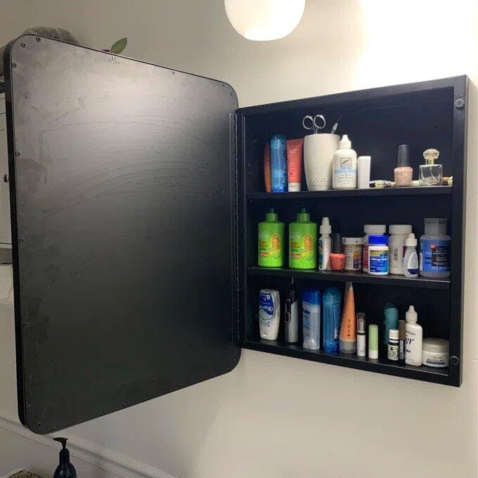 Sleek Black Edge Mirror Cabinet with Storage Shelves