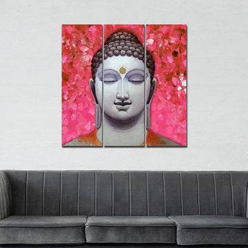 Spiritual Lord Gautam Buddha Wall Painting Three Pieces