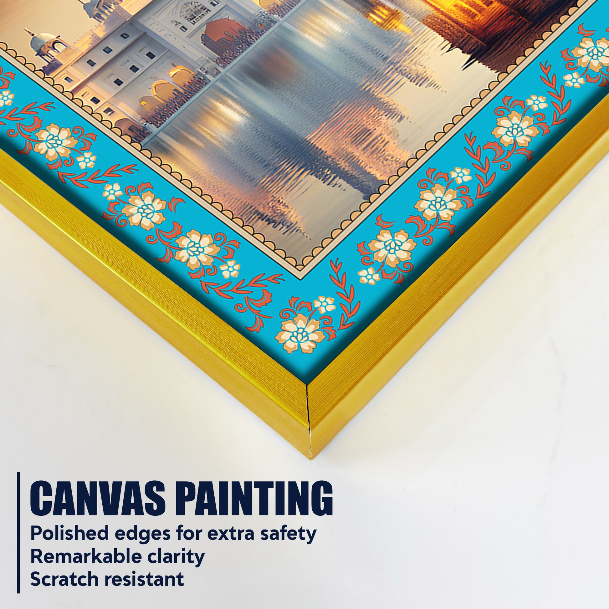 Sri Harmandir Sahib Gurdwara Floral Border Canvas Wall Painting