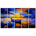 Amazing Sunset at Beach Canvas Wall Painting 5 Pieces