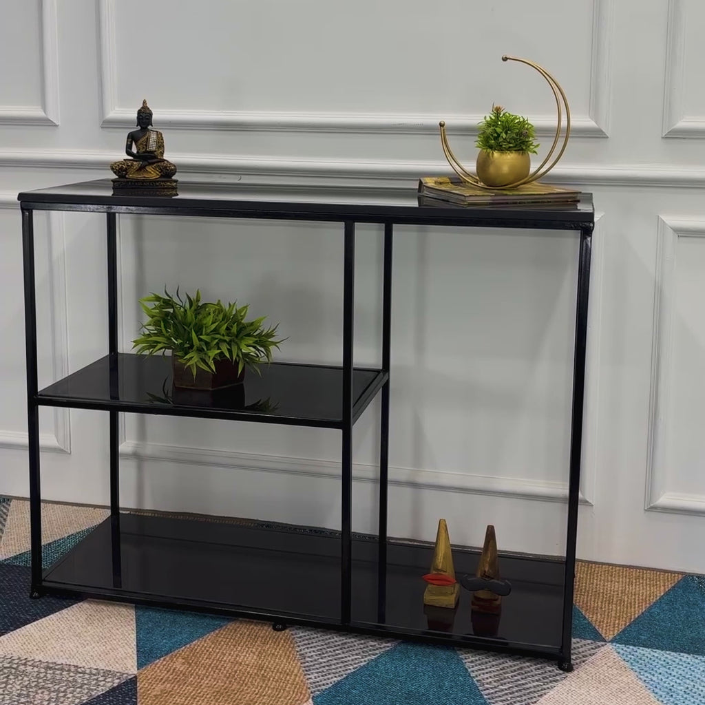 The Stylish Sidekick 3-Tier Black Marble Console Table