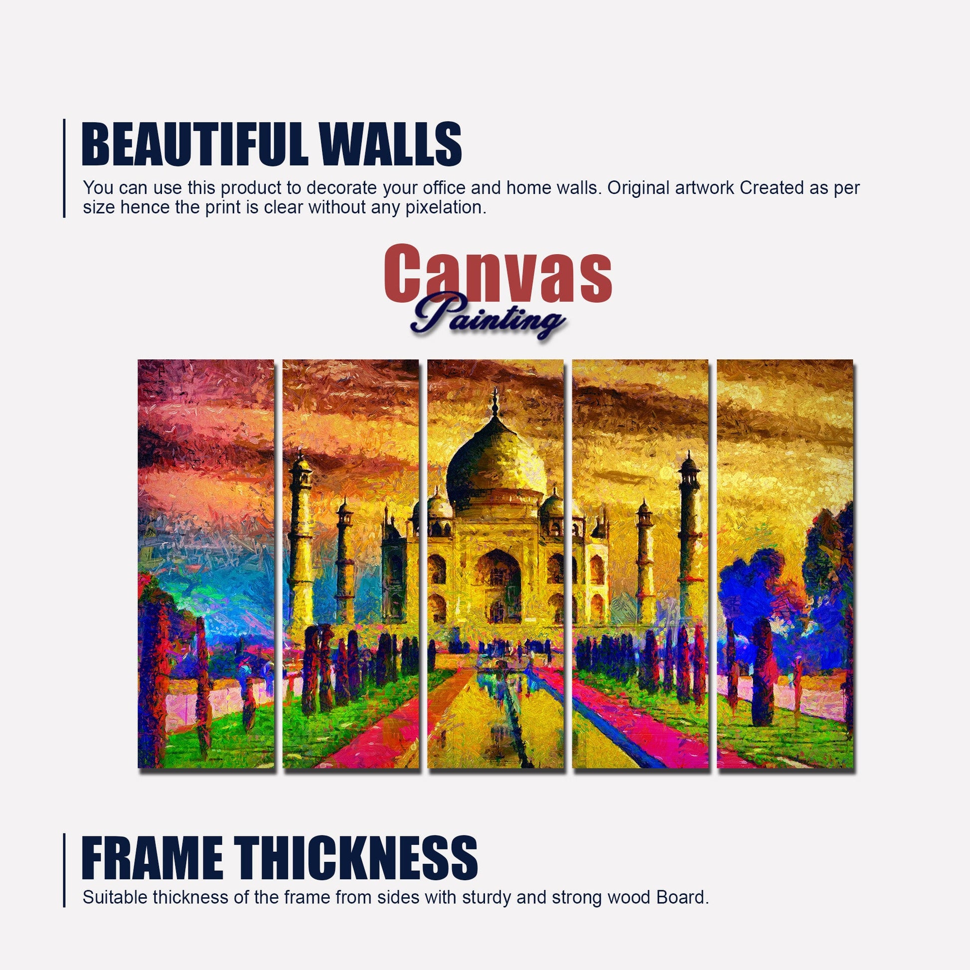 The Taj Mahal Canvas Wall Painting Set of Five