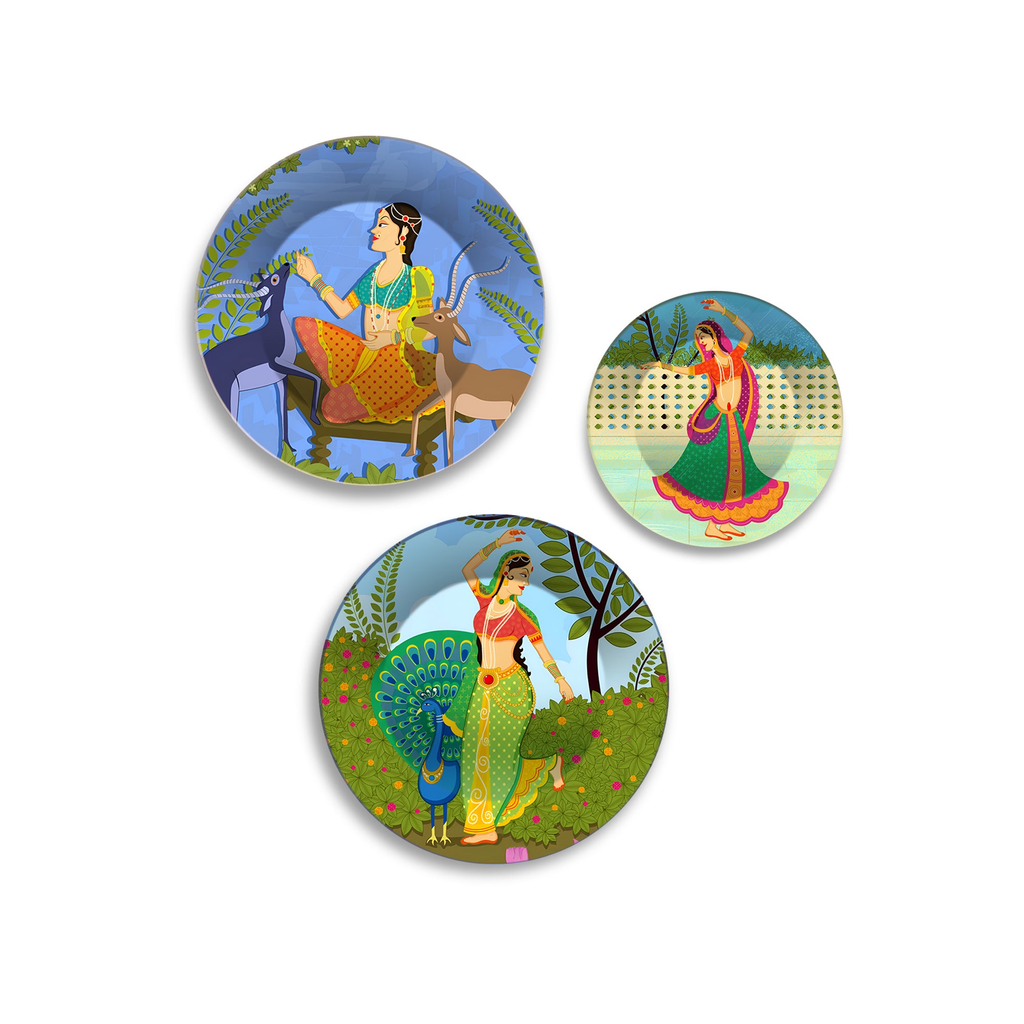 Vrindavan Vibes Women & Nature Premium Wall Plates Painting Set of 3