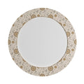White Frame Floral Printed Round Acrylic Wall Mirror