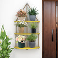 Wooden Wall Hanging Planter Shelf with Rope Three Layers(Yellow)